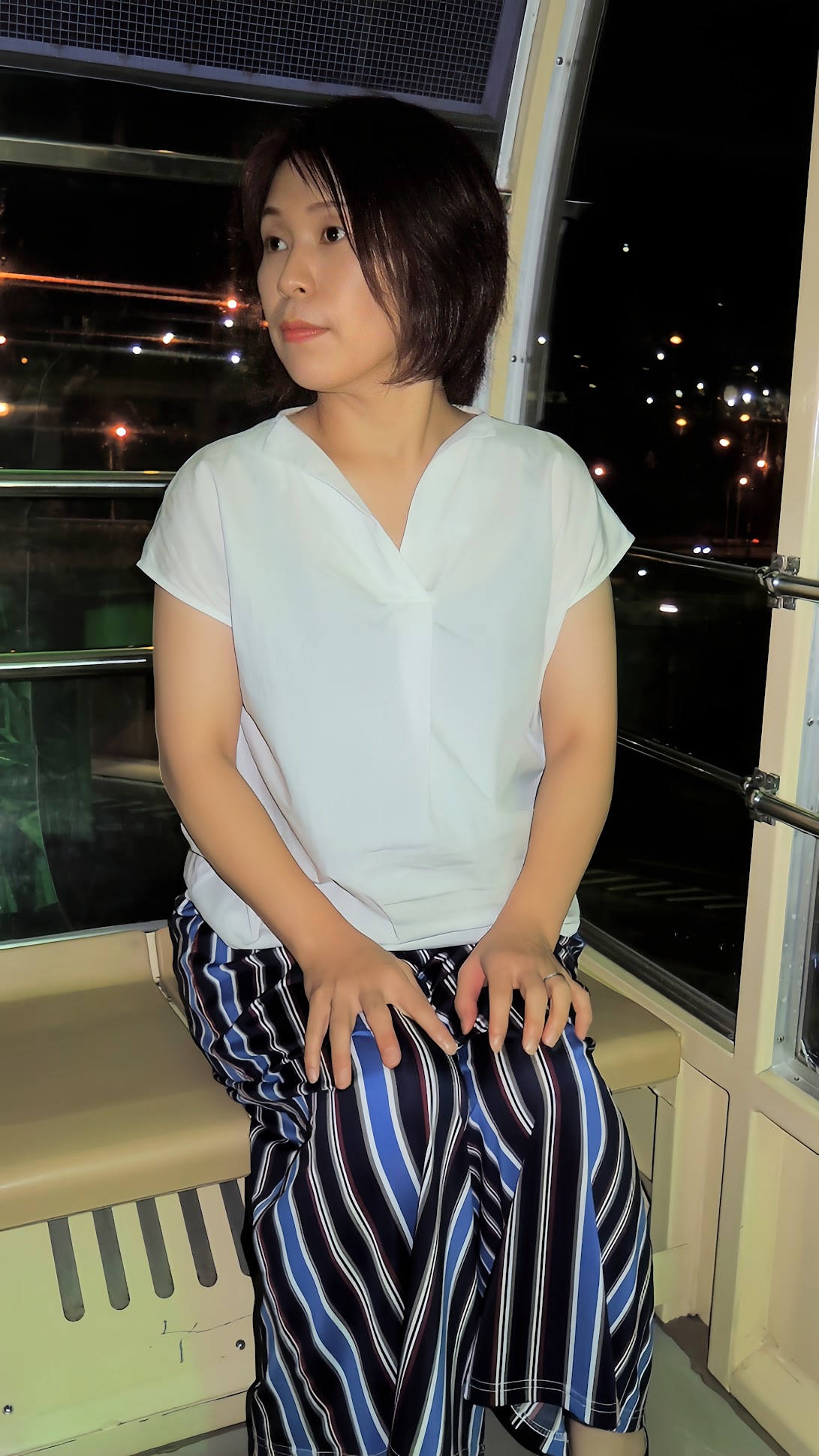 しっかり、パンティとブラを着用してでのゴンドラ内で全裸になりましたかぁ。