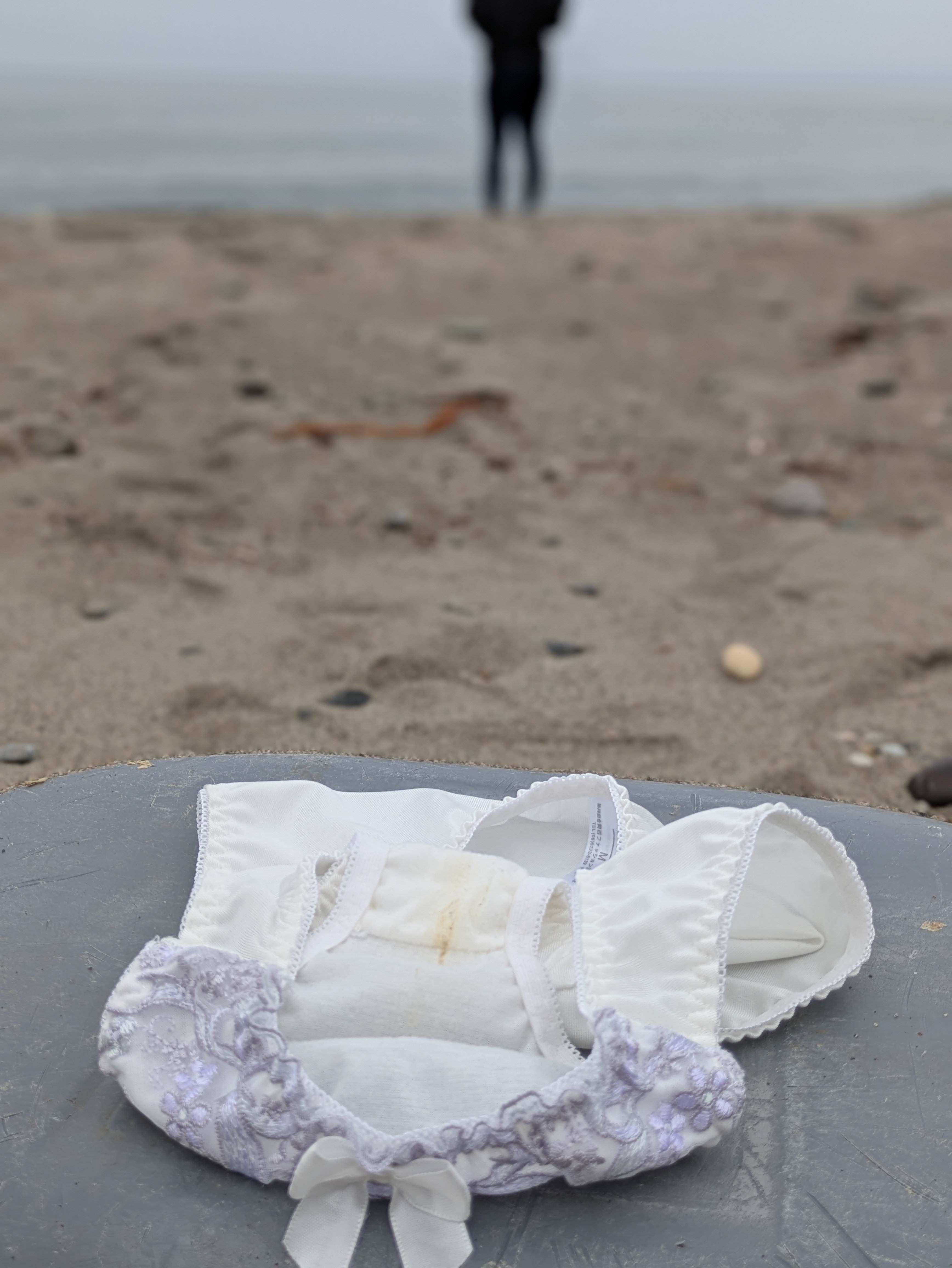 波打ち際に汚パンティとはw